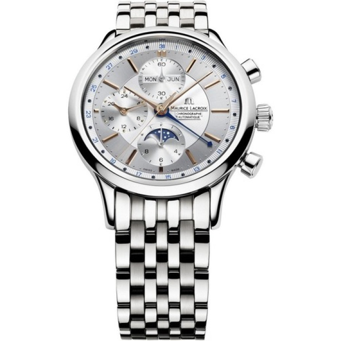 Перед вами часы фирмы Maurice Lacroix, Швейцария. Данный артикул LC6078-SS002-131 принадлежит коллекции Les Classiques. Часы Морис Лакруа являются солидным аксессуаром, подчёркивающим ваш вкус. Удобные часы, тип калибра - механический. Материал браслета и корпуса - сталь. Имеется индикатор даты. Для тех, кто часто путешествует, имеется индикатор второго поясного времени. Размер часов D 41 мм.