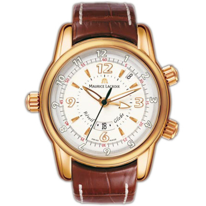 Перед вами часы фирмы Maurice Lacroix, Швейцария. Данный артикул MP6388-PG101-830 принадлежит коллекции Masterpiece. Прекрасный образец классических часов Морис Лакруа для людей, ценящих, в первую очередь, своё время. Удобные часы, тип калибра - механический. Материал корпуса - розовое золото 18к. Материалом ремня является кожа. Также в часах имеется указатель даты. Для тех, кто часто путешествует, имеется индикатор второго поясного времени. Размер часов D 43 мм.