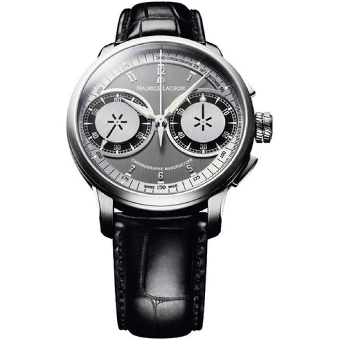 Швейцарские часы Maurice Lacroix, MP7128-SS001-320 из коллекции Masterpiece. Прекрасный образец классических часов Морис Лакруа для людей, ценящих, в первую очередь, своё время. Удобные часы, тип калибра - механический. Материал корпуса - сталь. Часы с удобным ремнём. Среди прочих преимуществ часов - их водостойкость. Размер часов D 45 мм.