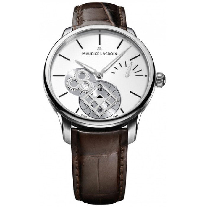 Maurice Lacroix - бренд из Швейцарии, получивший всемирную известность. Данные часы (Masterpiece MP7158-SS001-101-1) - яркие его представители. Прекрасный образец классических часов Морис Лакруа для людей, ценящих, в первую очередь, своё время. Удобные часы, тип калибра - механический. В качестве материала корпуса используется сталь. Материалом ремня является кожа. Габариты корпуса - D 43 мм.