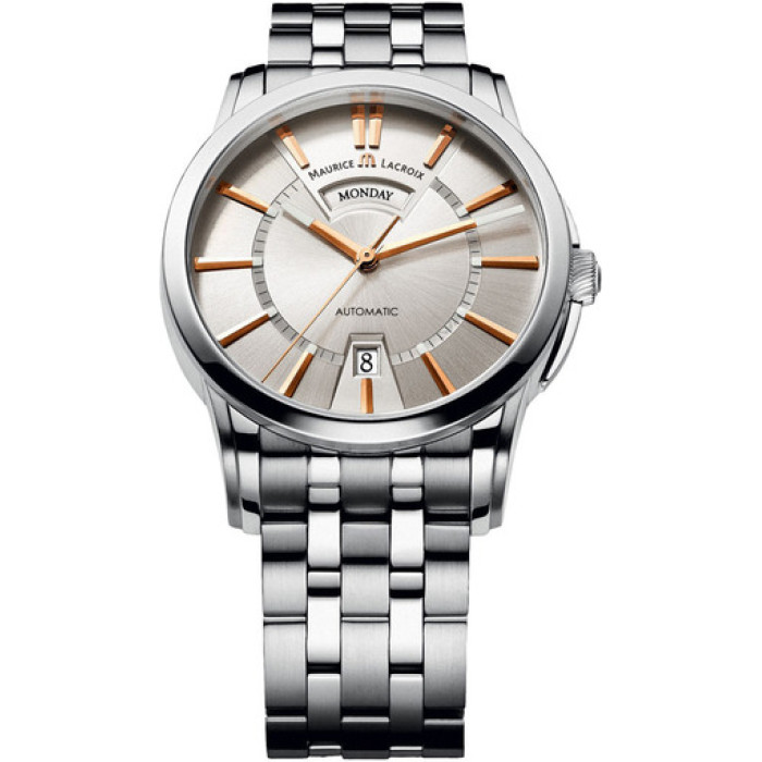 Швейцарские часы Maurice Lacroix, PT6158-SS002-19E из коллекции Pontos. Часы Морис Лакруа являются солидным аксессуаром, подчёркивающим ваш вкус. Удобные часы, тип калибра - механический. Материалом корпуса и браслета является сталь. На циферблате есть указатель даты. Размер часов D 40 мм.
