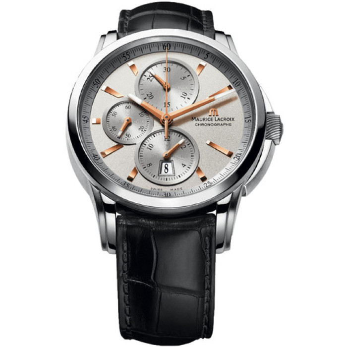 Представляем вашему вниманию часы фирмы Maurice Lacroix, артикул PT6188-SS001-131. Родиной этой фирмы является Швейцария. Прекрасный образец классических часов Морис Лакруа для людей, ценящих, в первую очередь, своё время. Тип механизма в часах - механический с автоподзаводом. Материал корпуса - сталь. Материалом ремня является кожа. На циферблате есть указатель даты. Габариты корпуса - D 43 мм.