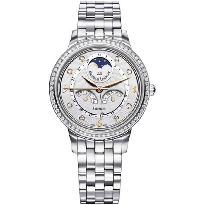 Представляем вам часы Maurice Lacroix, страна производства Швейцария. Артикул SD6107-SD502-15E относится к коллекции Starside. Если для вас классика - это синоним элегантности, часы Морис Лакруа прекрасно дополнят ваш стиль. Тип механизма в часах - механический. Материалом корпуса и браслета является сталь. Часы также инкрустированы бриллиантами. На циферблате есть указатель даты. Габариты корпуса - D 38 мм.
