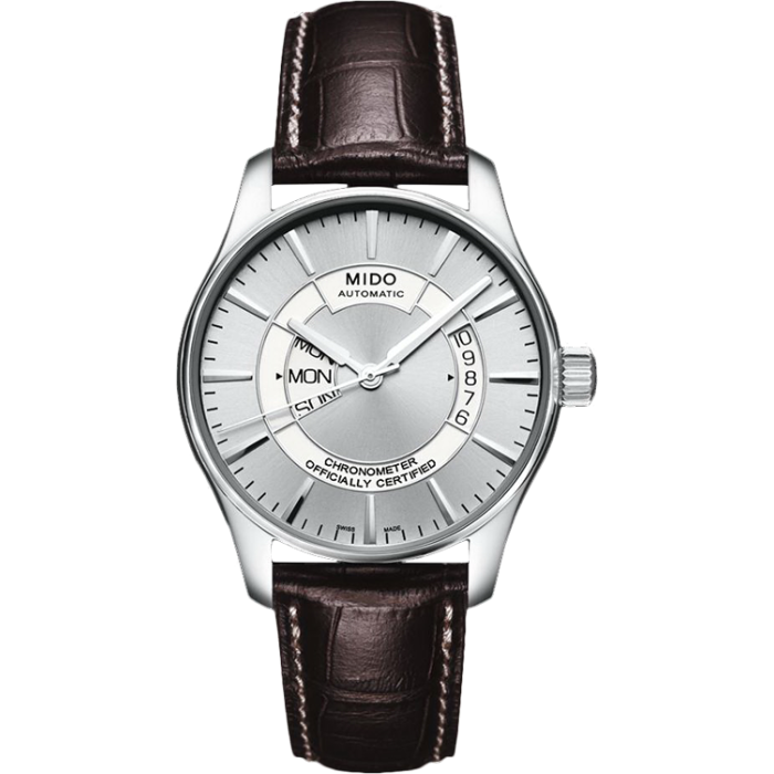 Сертифицированный хронометр C.O.S.C. Шикарная классика в стильном исполнении. Полированные накладные индексы. Циферблат выполнен с узором гильоше. Апертура даты на 3 часа, дня недели на 9 часов.
