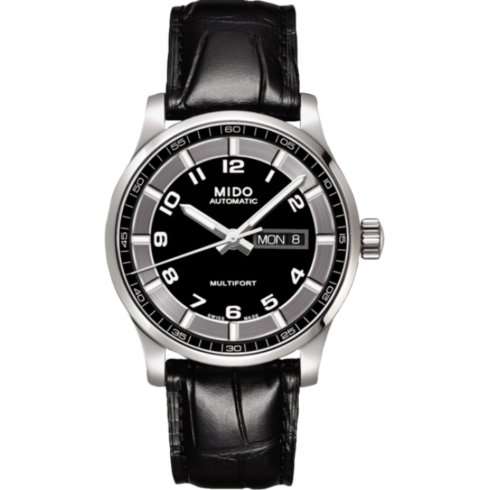 Мужская модель с индикацией часов, минут и секунд центральными стрелками, окошко даты и дня недели в положении 3 часа.