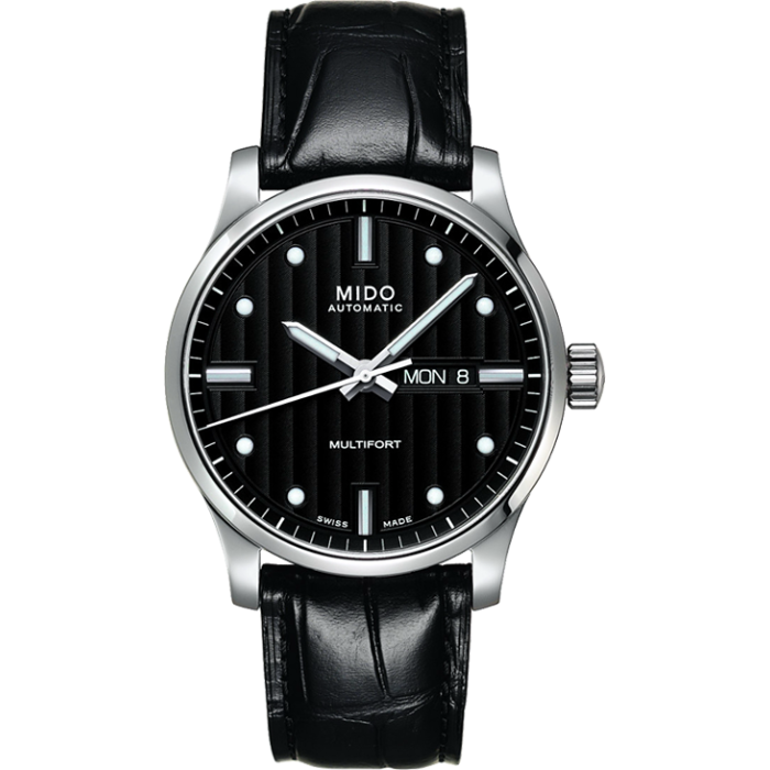 Мужская модель с индикацией часов, минут и секунд центральными стрелками, окошко даты и дня недели в положении 3 часа.
