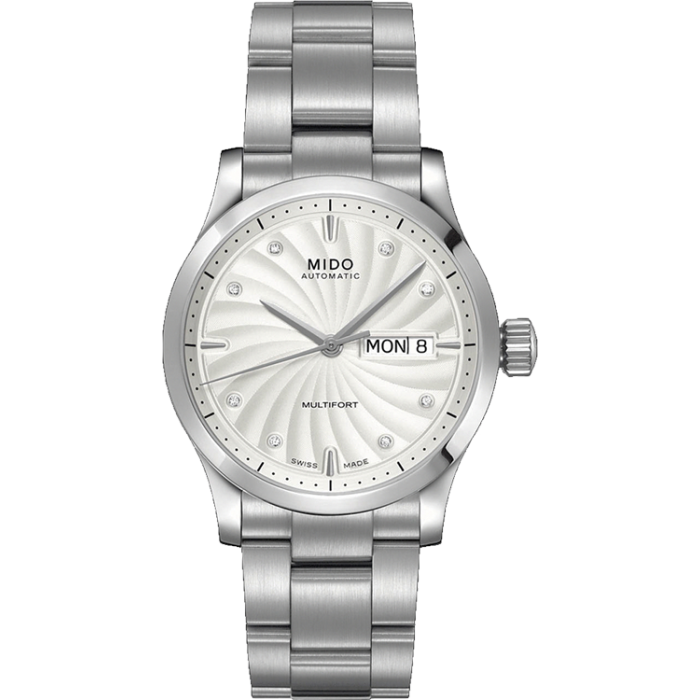 Мужские часы. Индикация часов, минут, секунд центральными стрелками. Окошко даты и дня недели в положении 3 часа. Циферблат украшен узором гильоше и бриллиантами.