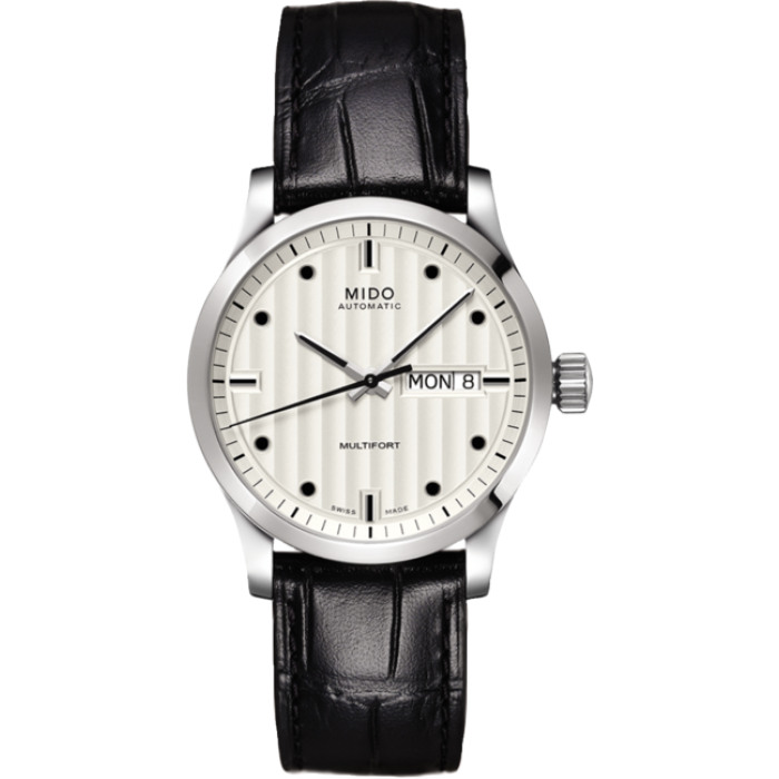 Мужские часы. Индикация часов, минут, секунд центральными стрелками. Окошко даты и дня недели в положении 3 часа. Циферблат украшен узором гильоше.