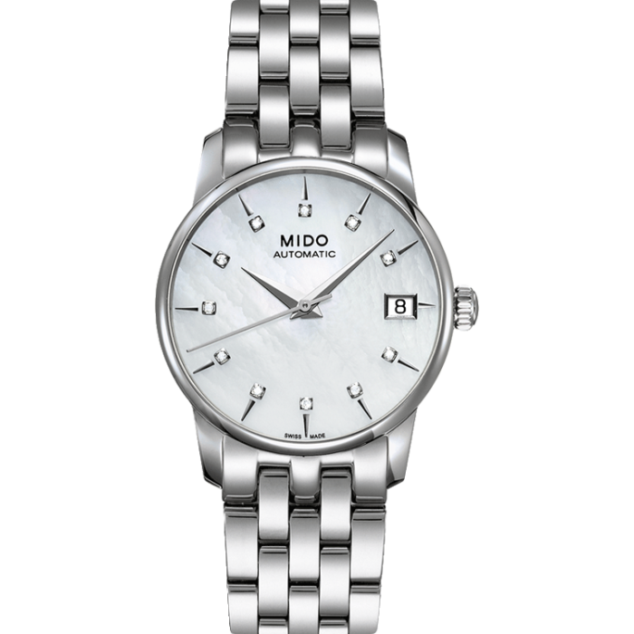 Baroncelli II Lady Удивительные женские часы. Скромность, граничащая с вызовом современности. Перламутровый циферблат притягивает внимание. 12 бриллиантов, вставленных к индексам подчеркнёт изысканность и утончённый вкус. Данная модель подходит не только для повседневной носки, но и дополнит композицию вечернего наряда или элегантного коктейльного платья.