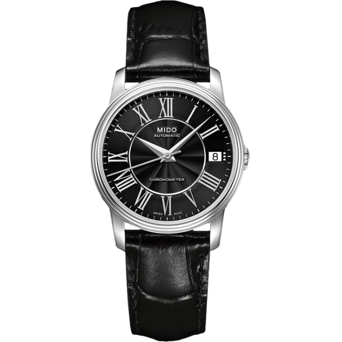 Женские часы. Хронометр C.O.S.C. Индикация часов, минут, секунд центральными стрелками. Окошко даты в положении 3 часа. Циферблат украшен узором гильоше.