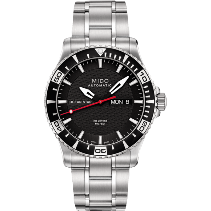 Классический дайвер. Однонаправленно вращающийся безель. Индикация даты и дня недели в положении 3 часа. Покрытие SuperLuminova на стрелках и разметке.