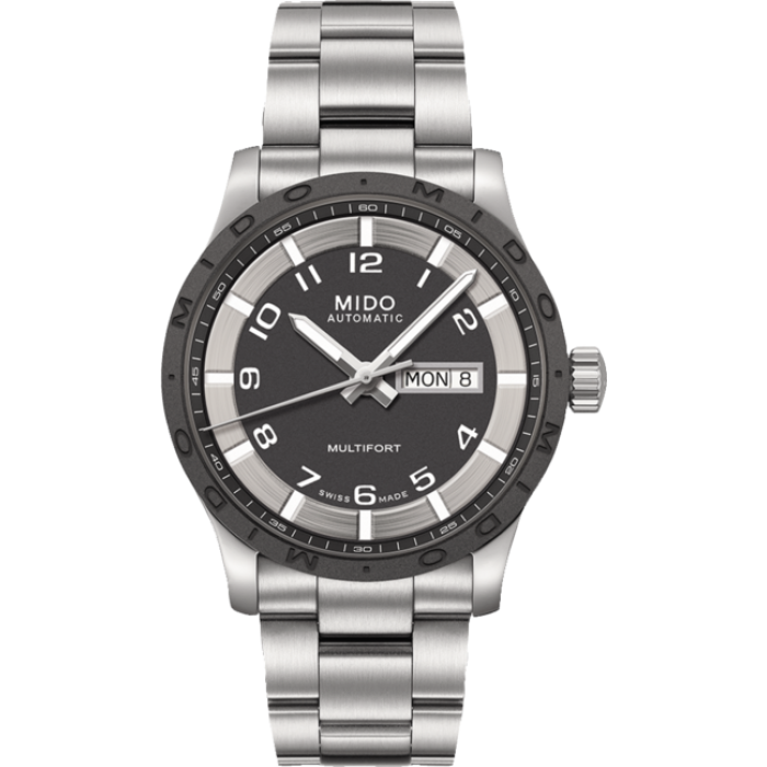 Мужские часы. Индикация часов, минут, секунд центральными стрелками. Окошко даты и дня недели в положении 3 часа. Безель с гравировкой бренда.