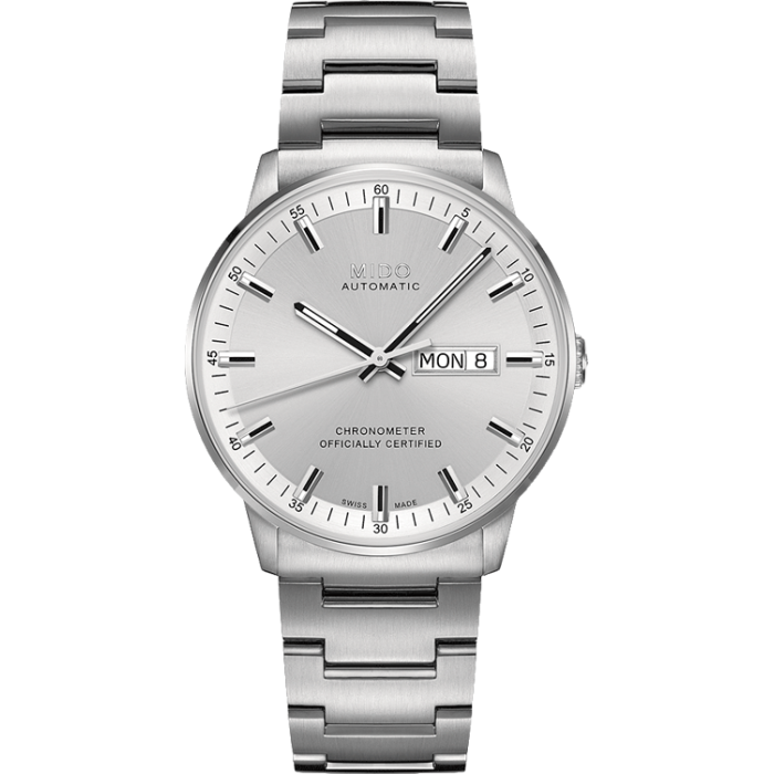 Commander II Стильные мужские часы. Скромность, граничащая с вызовом современности. Минималистический дизайн показывает дань традициям часового искусства. Помимо времени, часы могут показать число и день недели, что поможет не потеряться в водовороте календаря. В то же время, сердцем часов является идеально отрегулированный и настроенный калибр, имеющий сертификат COSC, позволяющий часам показывать время с поразительной точностью. Данная модель станет верным спутником на Вашем запястье.
