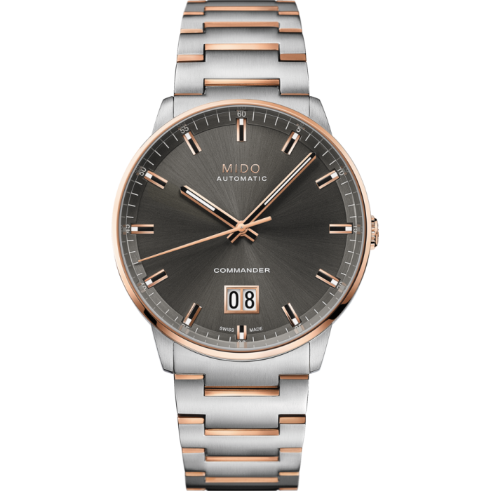 Commander Big Date Элегантные мужские часы с крупной апертурой даты в положении 6 часов. Сатинированный циферблат с узором sunray. Прозрачная задняя крышка.