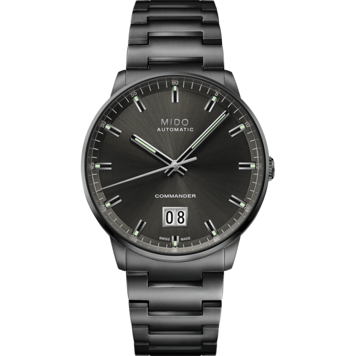 Commander Big Date Элегантные мужские часы с крупной апертурой даты в положении 6 часов. Сатинированный циферблат с узором sunray. Прозрачная задняя крышка.
