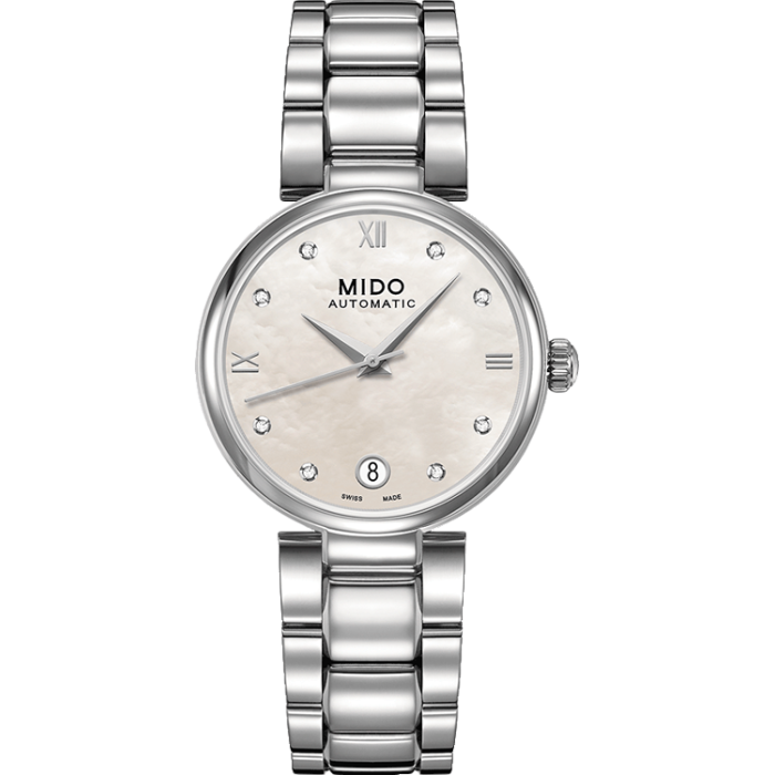 Baroncelli II Стильная модель для прекрасной половины. Циферблат украшен нежным перламутром, бриллианты вместо меток играют на свету. Апертура даты на 6 часов. Эта модель станет вашим верным спутником.