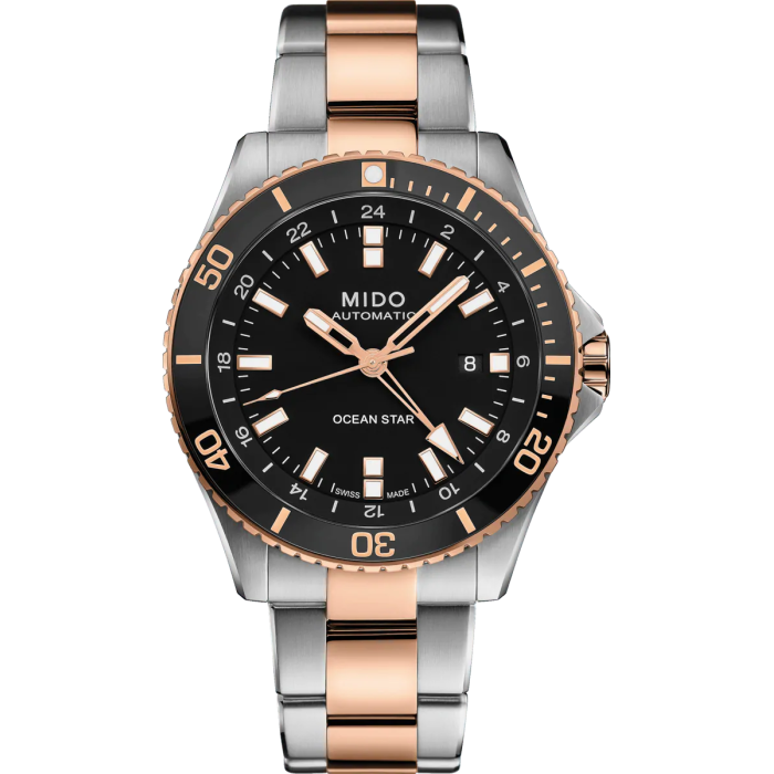 Ocean Star GMT Мужская механическая модель с автоподзаводом. Функция второго часового пояса, покрытие Superluminova на стрелках и разметке. Окошко даты в районе 3 часов.