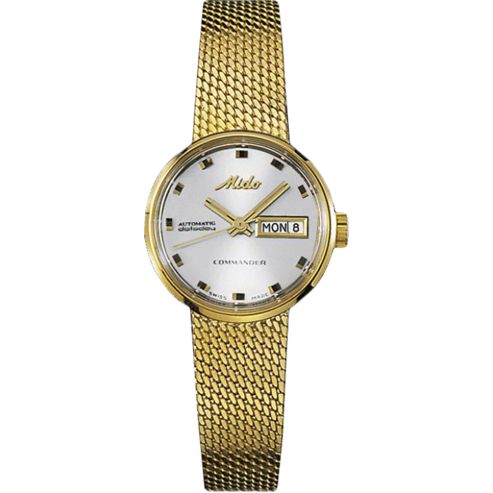 Часы для любителей ретро-стиля. Четкие формы, браслет из миланского плетения, циферблат с узором Sunray, четкая контрастная разметка, заводная головка с системой Aquadura.