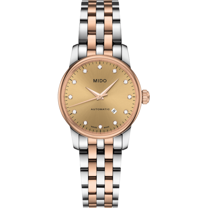 Baroncelli II Классическая женская модель на все случаи жизни. Лаконичный циферблат украшен бриллиантами и узором "солнечные лучи". Апертура даты между 4 и 5 часами.