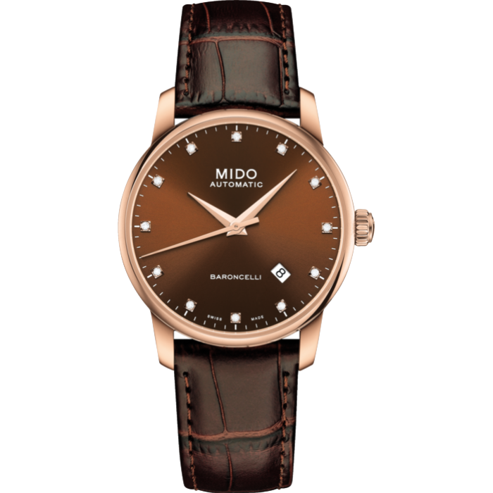 Baroncelli II Классические мужские часы. Модель выполнена в лучших традициях часового искусства. Лаконичный циферблат, украшенный бриллиантами вместо разметки. Прозрачная задняя крышка открывает вид на механизм.