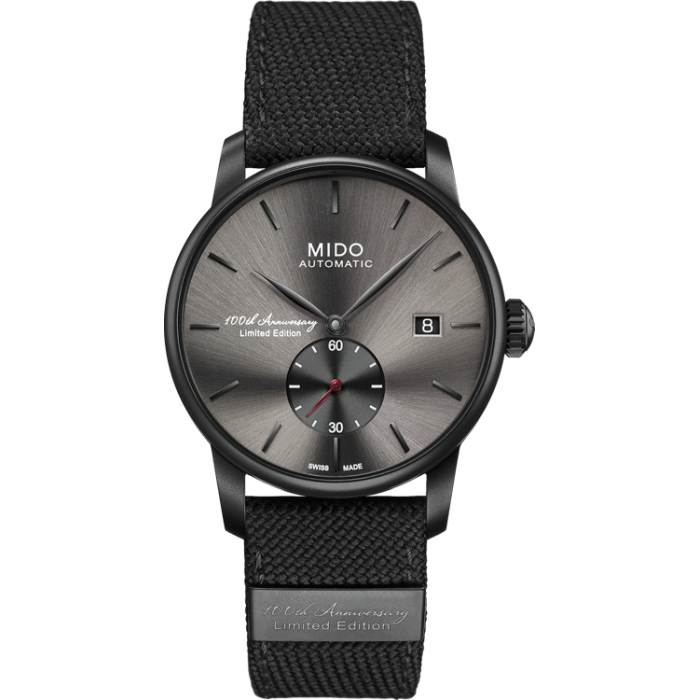 Модель из трилогии часов, посвященных 100-летней годовщине марки MIDO. Дизайн будущего представлен в виде чёрного PVD и нейлонового ремешка. Вынесенная секундная стрелка. Циферблат выполнен с узором sunray. Апертура даты в положении 3 часа.