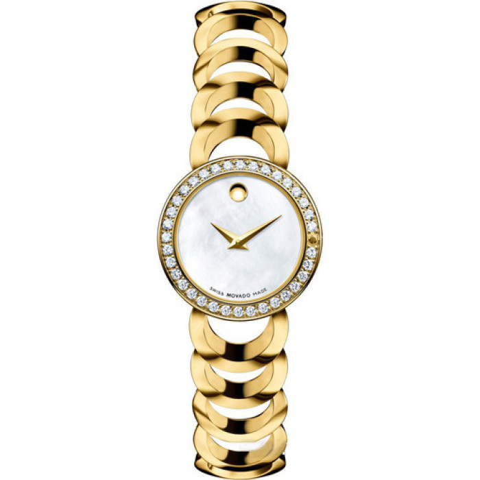 Мы рады представить вам часы фирмы Movado, страна производства Швейцария. Настоящий артикул 606467 относится к коллекции Rondiro. Эти часы никогда не выйдут из моды,поскольку представляют собой олицетворение классики. Часы, родиной которых является Швейцария. Тип калибра - Кварцевый. Материал корпуса - сталь. Корпус покрывает позолота. Материалом браслета является сталь. Часы также инкрустированы бриллиантами.
