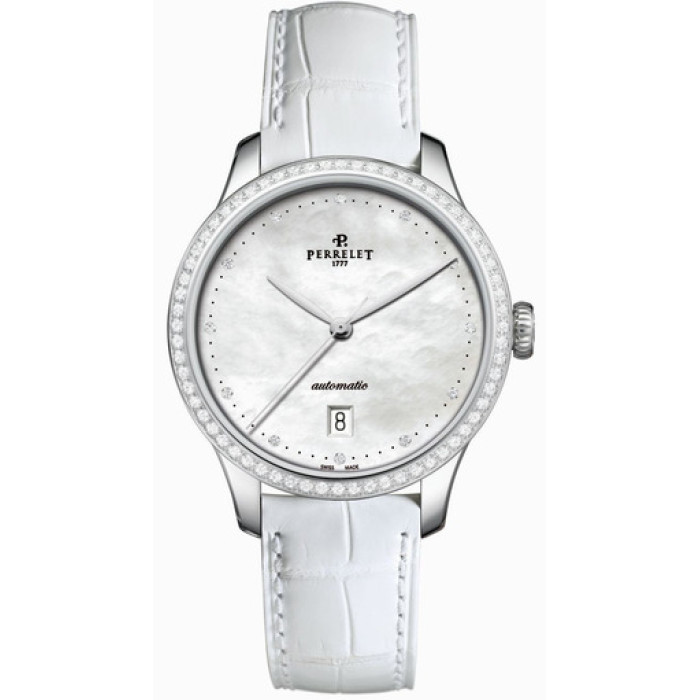 Perrelet - бренд из Швейцарии, получивший всемирную известность. Данные часы (Classic A2049/1) - яркие его представители. Прекрасный образец классических часов Перле для людей, ценящих, в первую очередь, своё время. Тип механизма в часах - механический. Материал корпуса - сталь. Часы с удобным ремнём. Часы также инкрустированы бриллиантами. Также в часах имеется указатель даты. Размер часов D 38 мм.
