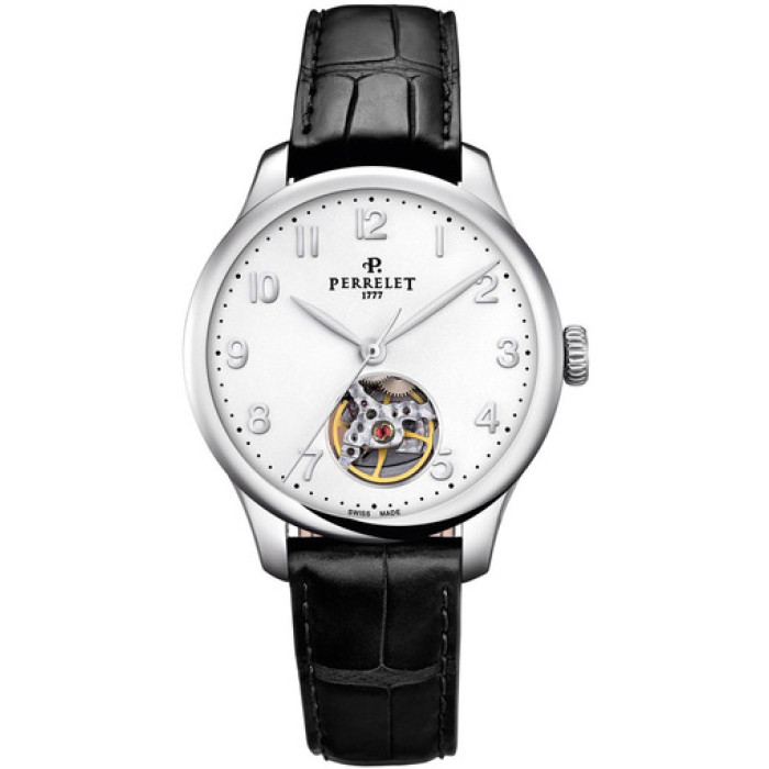 Представляем вашему вниманию часы фирмы Perrelet, артикул A2067/1. Родиной этой фирмы является Швейцария. Прекрасный образец классических часов Перле для людей, ценящих, в первую очередь, своё время. Удобные часы, тип калибра - механический. В качестве материала корпуса используется сталь. Часы с удобным ремнём. Часы-скелетоны. Размер часов D 35 мм.