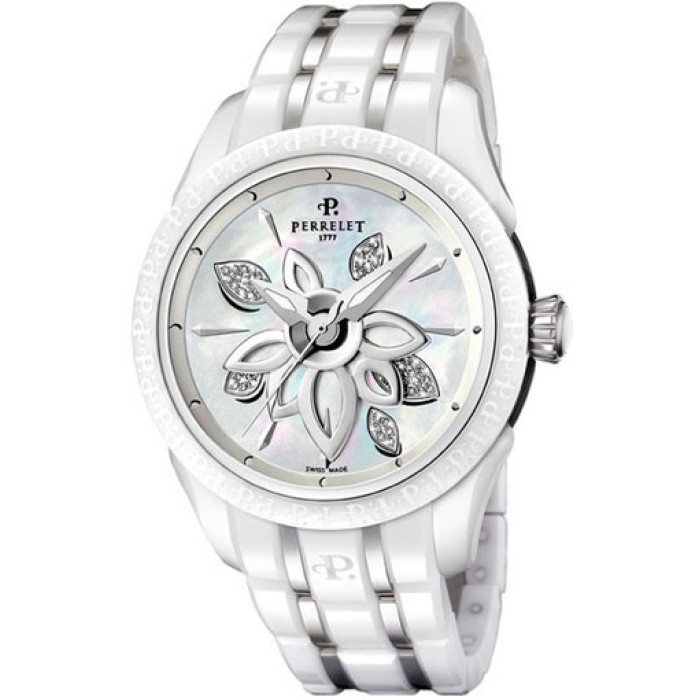 Перед вами часы фирмы Perrelet, Швейцария. Данный артикул A2039/A принадлежит коллекции Diamond Flower. С часами Перле вы будете постоянно ловить на себе заинтересованные взгляды. Стильные и яркие часы. Материалом корпуса и ремня является керамика. В качестве украшения используются бриллианты. Цвет ремня - белый. Размер часов D 40 мм.