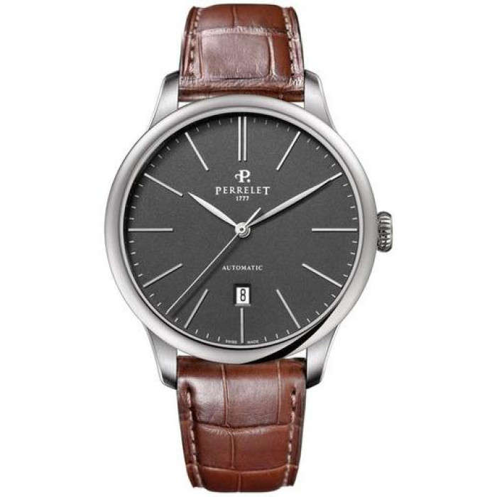 Швейцарские часы Perrelet, A1073/3 из коллекции First Class. Часы Перле никогда не выйдут из моды, поскольку представляют собой олицетворение классики. Тип механизма в часах - механический. В качестве материала корпуса используется сталь. Часы с удобным ремнём. Имеется индикатор даты. Габариты корпуса - D 42.5 мм.