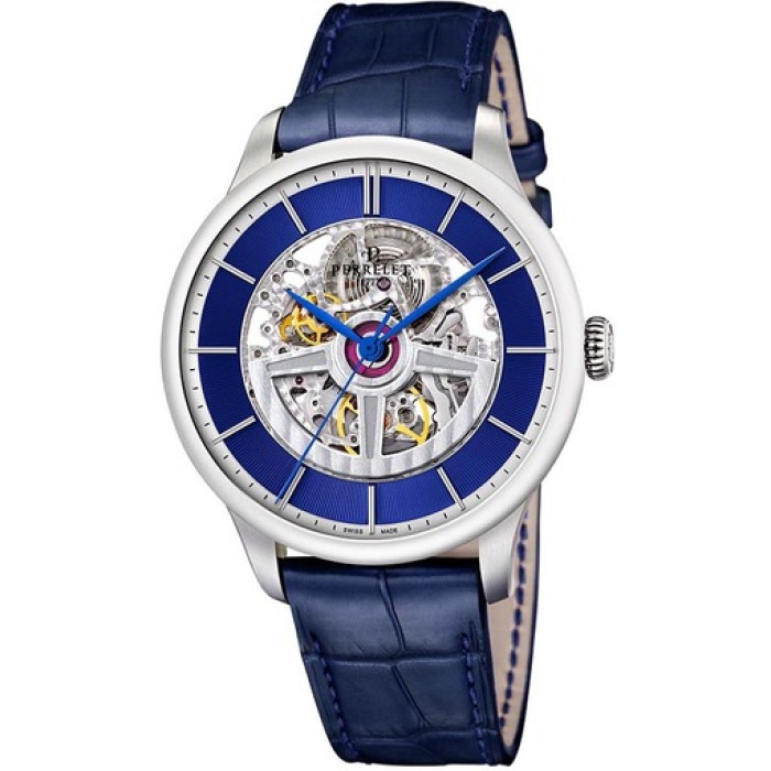 Швейцарские часы Perrelet, A1091/3 из коллекции First Class. Часы Перреле являются солидным аксессуаром, подчёркивающим ваш вкус. Тип механизма в часах - механический с автоподзаводом. Материал корпуса - сталь. Материалом ремня является кожа. Часы-скелетоны. Размер часов D 42.5 мм.