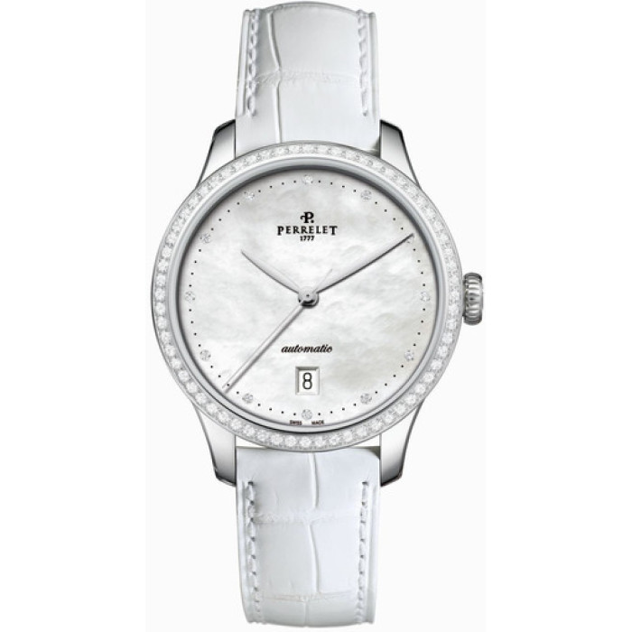 Представляем вашему вниманию часы фирмы Perrelet, артикул A2050/1P. Родиной этой фирмы является Швейцария. Часы Перле идеально подойдут любительницам изящной простоты и функциональности. Удобные часы, тип калибра - механический с автоподзаводом. В качестве материала корпуса используется сталь. Часы с удобным ремнём. Часы также инкрустированы бриллиантами. Имеется индикатор даты. Габариты корпуса - D 38 мм.
