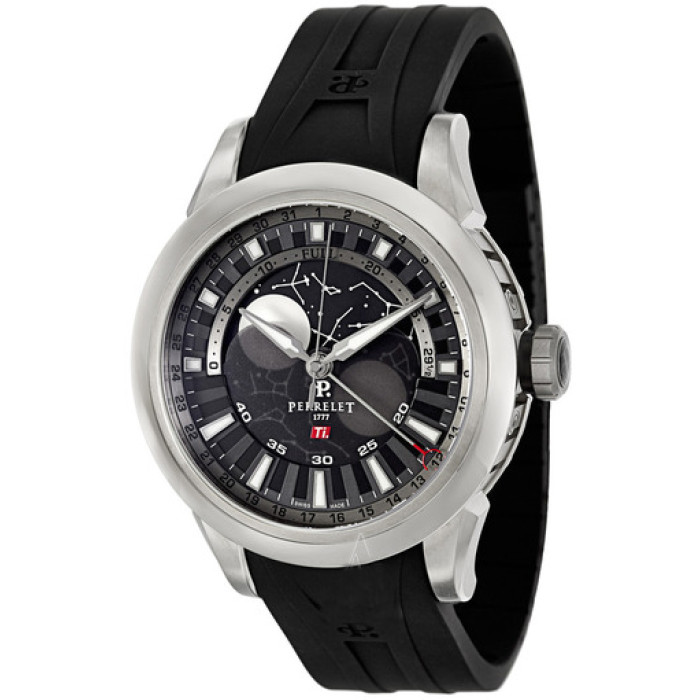 Перед вами часы фирмы Perrelet, Швейцария. Данный артикул A5000/2 принадлежит коллекции Titanium. Часы Перле никогда не выйдут из моды, поскольку представляют собой олицетворение классики. В данной модели тип калибра - механический. Материал корпуса - титан. Материалом ремня является каучук. Также в часах имеется указатель даты. Для тех, кто часто путешествует, имеется индикатор второго поясного времени. Габариты корпуса - D 43.5 мм.