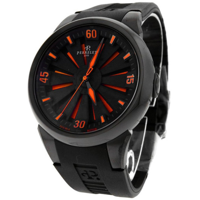 Представляем вашему вниманию часы фирмы Perrelet, артикул A1047/3. Родиной этой фирмы является Швейцария. Часы Перле являются прекрасным выбором для любителей подчеркнуть свою индивидуальность. Прекрасный выбор для любителей модных часов. Материал корпуса - сталь. Часы с удобным ремнём. Для украшения корпуса используется pvd покрытие. Цвет ремня - черный. Размер часов D 44 мм.