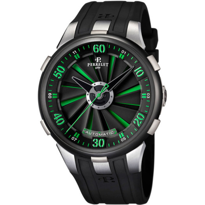 Перед вами часы фирмы Perrelet, Швейцария. Данный артикул A1050/3 принадлежит коллекции Turbine. Часы Перле подойдут вам, если вы решили выйти за рамки традиционной классики и хотите подчеркнуть свой неповторимый стиль. Стильные и яркие часы. Как материал корпуса используется титан. Часы с удобным ремнём. Для украшения корпуса используется pvd покрытие. Цвет ремня - черный. Размер часов D 48 мм.