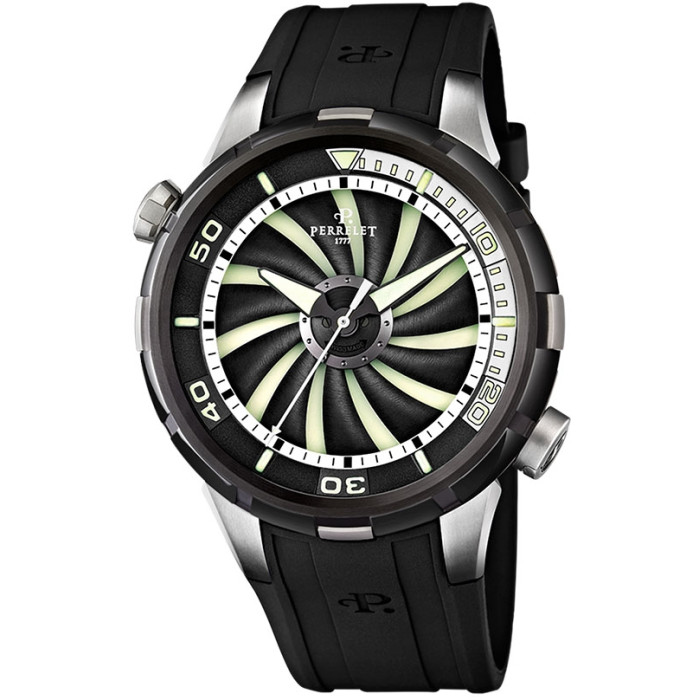 Швейцарские часы Perrelet Turbine A1067/1 созданы для современных мужчин, обладающих отличным вкусом и ценящих индивидуальный стиль. А модели Turbine Diver помимо спортивного динамичного дизайна обладают еще и внушительной водозащитой. Круглый корпус имеет форму tambour (барабан) и выполнен из высококачественной нержавеющей стали. Мануфактурный механизма с двойным ротором автоматического подзавода.