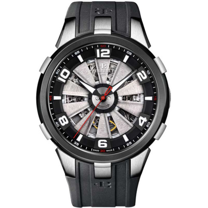 Швейцарские часы Perrelet, A1082/1 из коллекции Turbine. Хотите выделить свой образ даже на модном мероприятии? Тогда часы Перле для вас! Модные часы-скелетоны. Материал корпуса - сталь. Часы с удобным ремнём. Для украшения корпуса используется pvd покрытие. Цвет ремня - черный. Размер часов D 44 мм.