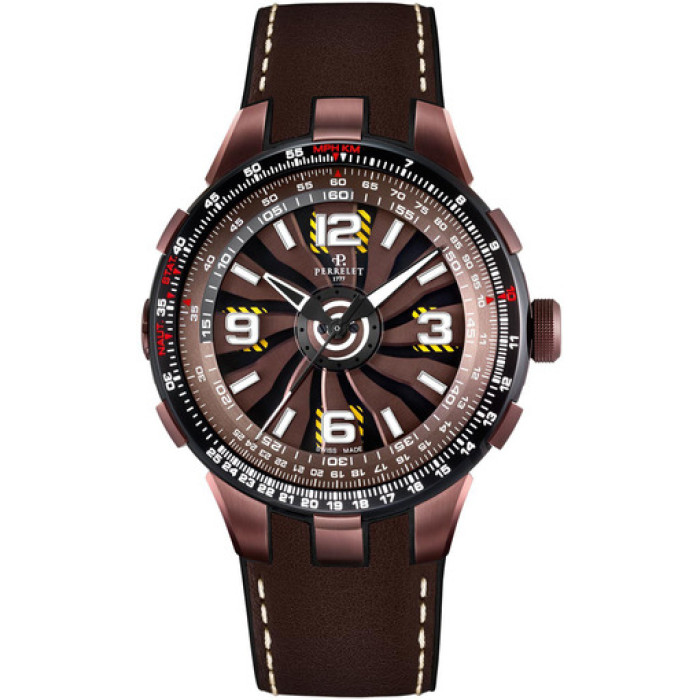Perrelet - бренд из Швейцарии, получивший всемирную известность. Данные часы (Turbine A1094/1A) - яркие его представители. Часы Перле станут вашим надёжным спутником, если вы предпочитаете активный образ жизни. Механический с автоподзаводы спортивные часы. Материал корпуса - сталь. Материалом ремня является кожа. Тип покрытия корпуса - pvd. Стекло сапфировое. Среди прочих преимуществ часов - их водостойкость. Габариты корпуса - D 48 мм.