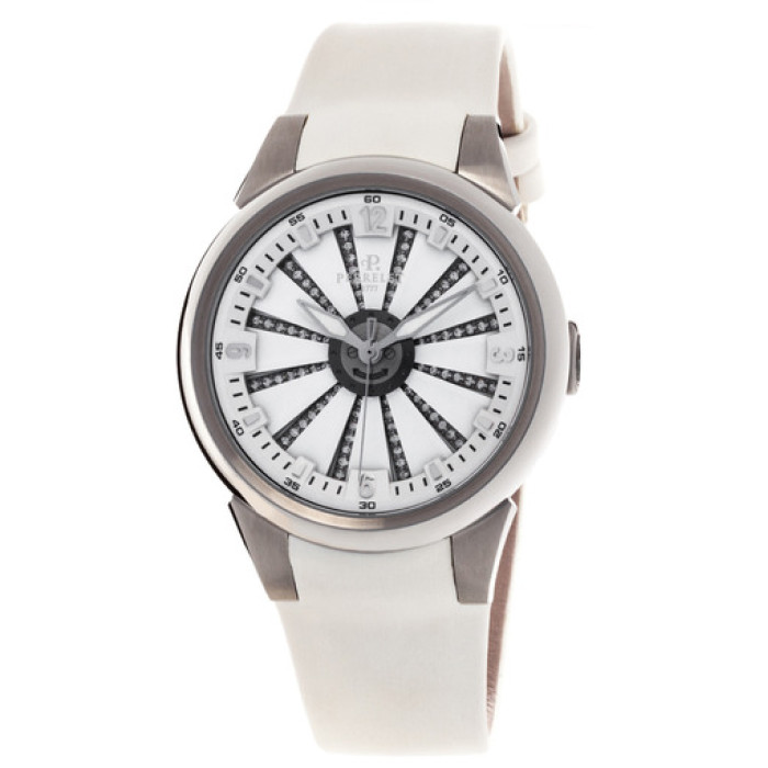 Представляем вашему вниманию часы фирмы Perrelet, артикул A2042/1. Родиной этой фирмы является Швейцария. С часами Перле вы будете постоянно ловить на себе заинтересованные взгляды. Прекрасный выбор для любителей модных часов. Как материал корпуса используется сталь. Часы с удобным ремнём. В качестве украшения используются бриллианты. Цвет ремня - белый. Габариты корпуса - D 41 мм.