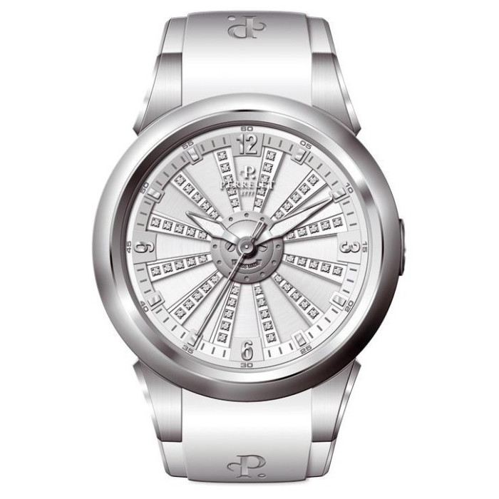 Данная модель — яркий представитель коллекции Turbine. Это настоящие женские часы. Материал корпуса часов — сталь. Стекло - сапфировое. Цвет циферблата - белый. Из основных функций на циферблате представлены: часы, минуты, секунды. В этих часах используются такие усложнения как дата, . Корпус часов в диаметре 38мм. Данная модель украшена бриллиантами.