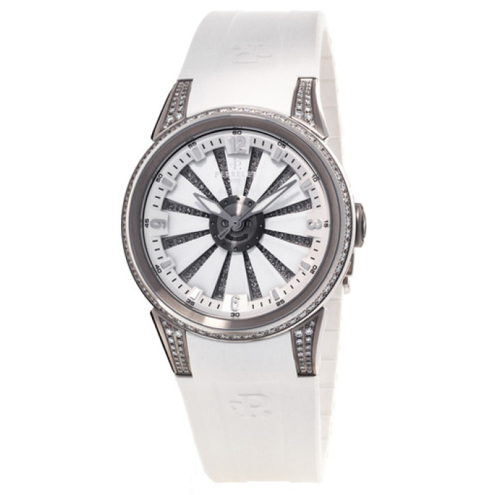 Швейцарские часы Perrelet, A2055/A из коллекции Turbine. С часами Перле вы будете постоянно ловить на себе заинтересованные взгляды. Стильные и яркие часы. Материал корпуса - сталь. Часы с удобным ремнём. В качестве украшения используются бриллианты. Цвет ремня - белый. Габариты корпуса - D 38 мм.