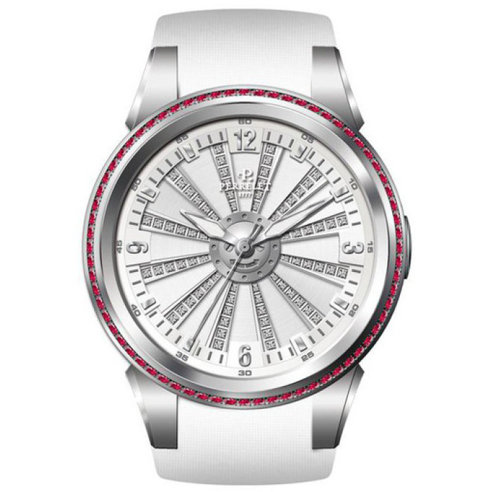 Часы Perrelet - надёжный ориентир во времени. Данная модель A2061/1 входит в коллекцию Turbine. Производство - Швейцария. Часы Перле являются прекрасным выбором для любителей подчеркнуть свою индивидуальность. Стильные и яркие часы. Материал корпуса - сталь. Часы с удобным ремнём. Корпус украшают бриллианты+рубины. Цвет ремня - белый. Габариты корпуса - D 41 мм.