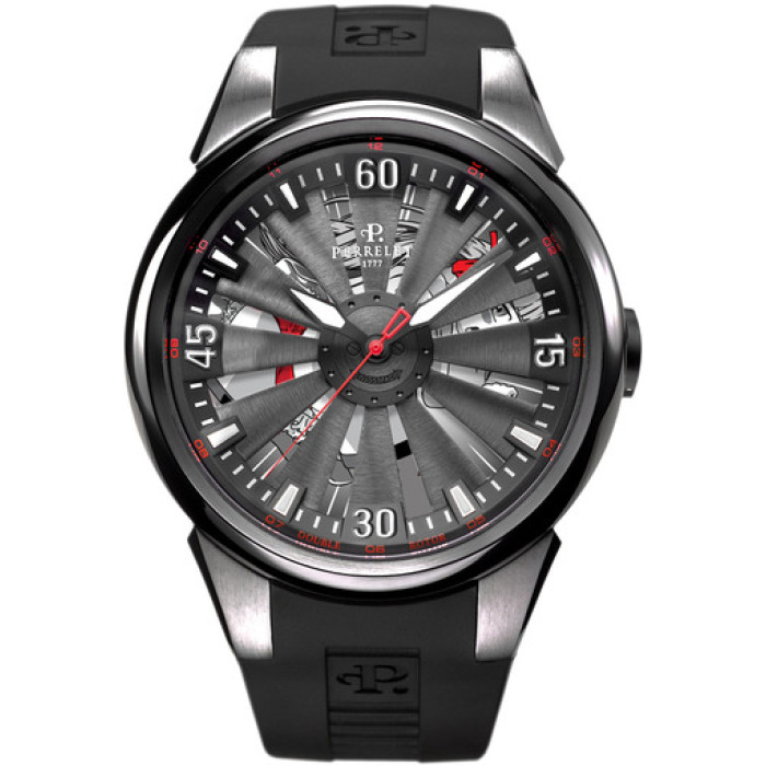 Perrelet - бренд из Швейцарии, получивший всемирную известность. Данные часы (Turbine A4020/2) - яркие его представители. Часы Перле являются прекрасным выбором для любителей подчеркнуть свою индивидуальность. Прекрасный выбор для любителей модных часов. Материал корпуса - титан. Часы с удобным ремнём. Цвет ремня - черный. Размер часов D 44 мм.