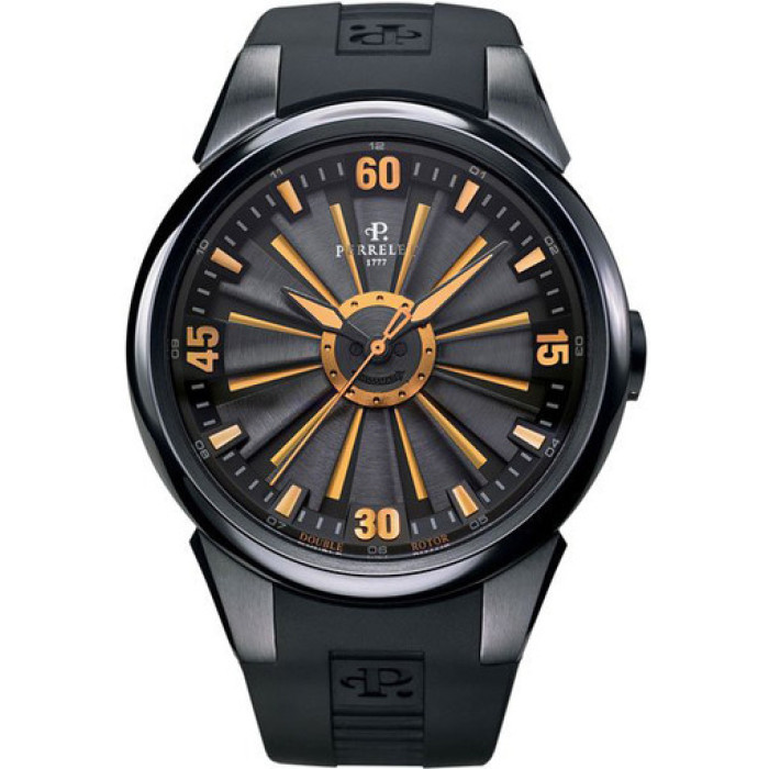 Представляем вашему вниманию часы фирмы Perrelet, артикул A8008/1P. Родиной этой фирмы является Швейцария. Надёжные спортивные часы Перле, не подведут вас в экстремальной ситуации. Механический с автоподзаводы спортивные часы. В качестве материала корпуса используется сталь. Часы с удобным ремнём. Тип покрытия корпуса - pvd. Стекло сапфировое. Часы являются водонепроницаемыми. Размер часов D 44 мм.