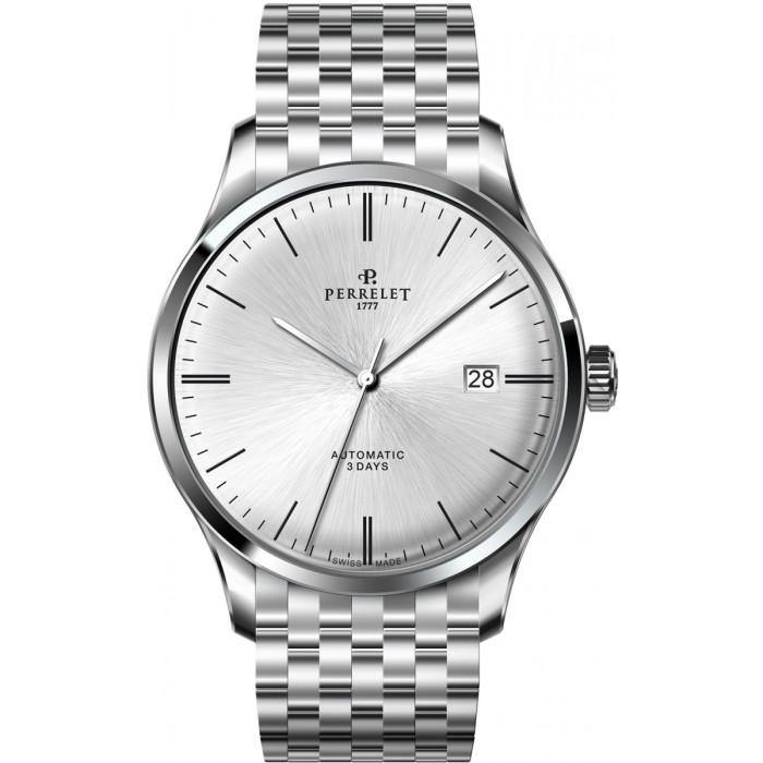 Швейцарский механизм с автоматическим подзаводом In-house калибр Perrelet P-321-2-H доработанный и декорированный на базе калибра Soprod. Запас хода составляет около 72 часов, частота колебаний баланса 21.600 v.p.h или 3 Гц, 93 компонента и 25 рубинов в качестве камневых опор и палет анкерной вилки. Мосты и платина имеют покрытие родием и украшены финишной шлифовкой Circular grained и Côtes de Genève, полый ротор автогподзавода декорирован в стиле «Perrelet», шляпки винтов отполированы и декорированы синением. Функции: часовая, минутная и секундная стрелки, индикация даты.