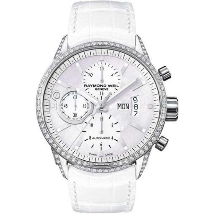 Перед вами часы фирмы Raymond Weil, Швейцария. Данный артикул 7730-SLS-97431 принадлежит коллекции Freelancer. Прекрасный образец классических часов Раймонд Велл для людей, ценящих, в первую очередь, своё время. Удобные часы, тип калибра - механический. Материал корпуса - сталь. Часы с удобным ремнём. Часы украшены бриллиантами. Имеется индикатор даты. Среди прочих преимуществ часов - их водостойкость. Габариты корпуса - D 42 мм.
