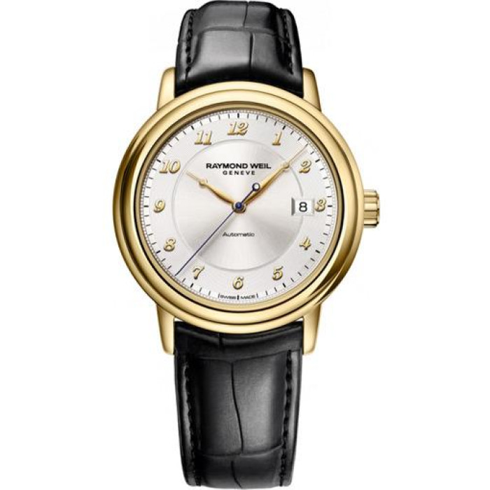 Часы Raymond Weil - надёжный ориентир во времени. Данная модель 12837-G-05658 входит в коллекцию Maestro. Производство - Швейцария. Деловая встреча или поездка с друзьями, торжественный раут или семейный отдых - часы Раймонд Велл подойдут для любого случая жизни. Удобные часы, тип калибра - механический. В качестве материала корпуса используется желтое золото 18к. Материалом ремня является кожа. Имеется индикатор даты. Размер часов D 39.5 мм.