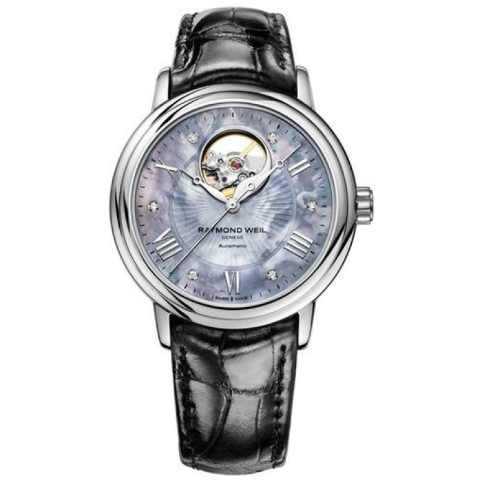 Raymond Weil - бренд из Швейцарии, получивший всемирную известность. Данные часы (Maestro 2827-L1-00296) - яркие его представители. Часы Раймонд Велл идеально подойдут любительницам изящной простоты и функциональности. В данной модели тип калибра - механический. Материал корпуса - сталь. Материалом ремня является кожа. Часы также инкрустированы бриллиантами. Часы-скелетоны. Габариты корпуса - D 39,5 мм.