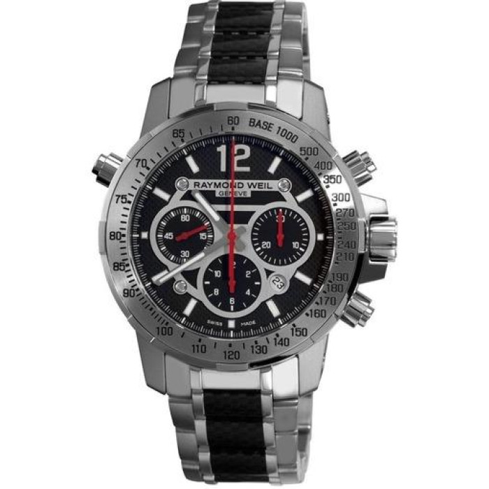 Raymond Weil - бренд из Швейцарии, получивший всемирную известность. Данные часы (Nabucco 7800-TCF-05207) - яркие его представители. Часы Раймонд Велл никогда не выйдут из моды, поскольку представляют собой олицетворение классики. Удобные часы, тип калибра - механический. В качестве материала корпуса используется сталь+титан. Материалом браслета является титан. На циферблате есть указатель даты. Среди прочих преимуществ часов - их водостойкость. Габариты корпуса - D 46 мм.