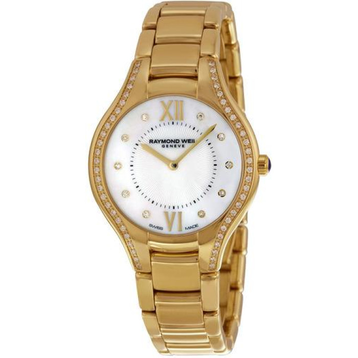 Raymond Weil - бренд из Швейцарии, получивший всемирную известность. Данные часы (Noemia 5132-PS-00985) - яркие его представители. Часы Раймонд Велл идеально подойдут любительницам изящной простоты и функциональности. В данной модели тип калибра - кварцевый. В качестве материала корпуса и браслета используется сталь. Тип покрытия корпуса - pvd. Часы украшены бриллиантами. Размер часов D 32 мм.